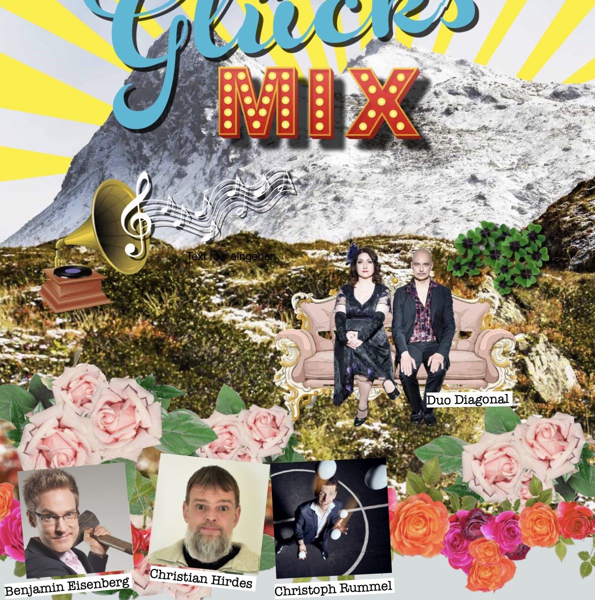 Was ist Glück? Ein Lottogewinn, ein Applaus, ein Kuss – oder einfach ein Abend voller Lachen und Staunen? Beim „Glücksmix“ im Cabaret Queue wird das Glück gleich mehrfach verteilt: auf der Bühne, im Publikum und zwischen den Zeilen. Wir präsentieren drei Acts, die Euch Glücksgefühle bereiten.